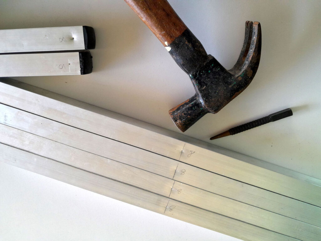 Cordless or mains drill/driver, hacksaw (or mitre saw fitted with a blade to cut aluminium), automatic centre punch (or centre punch*), hammer, spanners, tube cutter, mini blowtorch or lighter, scissors able to handle straps, fabric punch or awl, wooden or rubber mallet (but preferably a bar clamp of sufficient length to seat the corner connectors and swivel connectors in the 25mm extrusions.