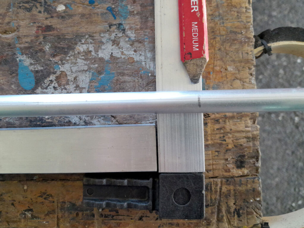 5. I attached only one corner connector at first, and used the crosspiece length to ascertain the correct cut for the upper middle rail tube. The ends of this rail will be seated in the uprights, so ensure that you allow for the thickness of the extrusion side when marking you cut-off point… if you cut the tube too long, it will splay the uprights, so rather cut it a little – 3-4mm shorter. It will still it comfortably within the uprights.