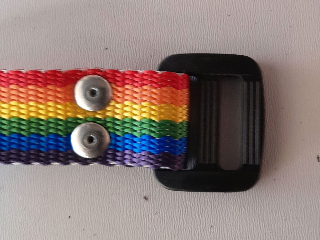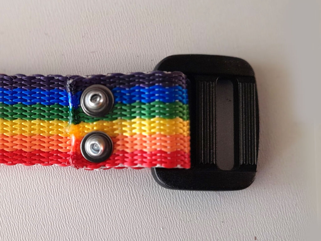 4. I used four rivets – two per end – to secure the buckles to one end of each end of the strap. You can use an awl to make the holes in the strap through which you can push the rivets, or use a fabric punch.