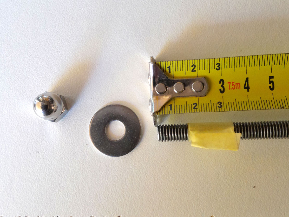2. Here are the main components – the 25mm extrusion, 8mmØ s/s threaded rods (2 of them at this stage), connectors and nuts, and washers (I dispensed with the larger fender 32mmØ washers and stuck with the smaller 25mmØ versions).
