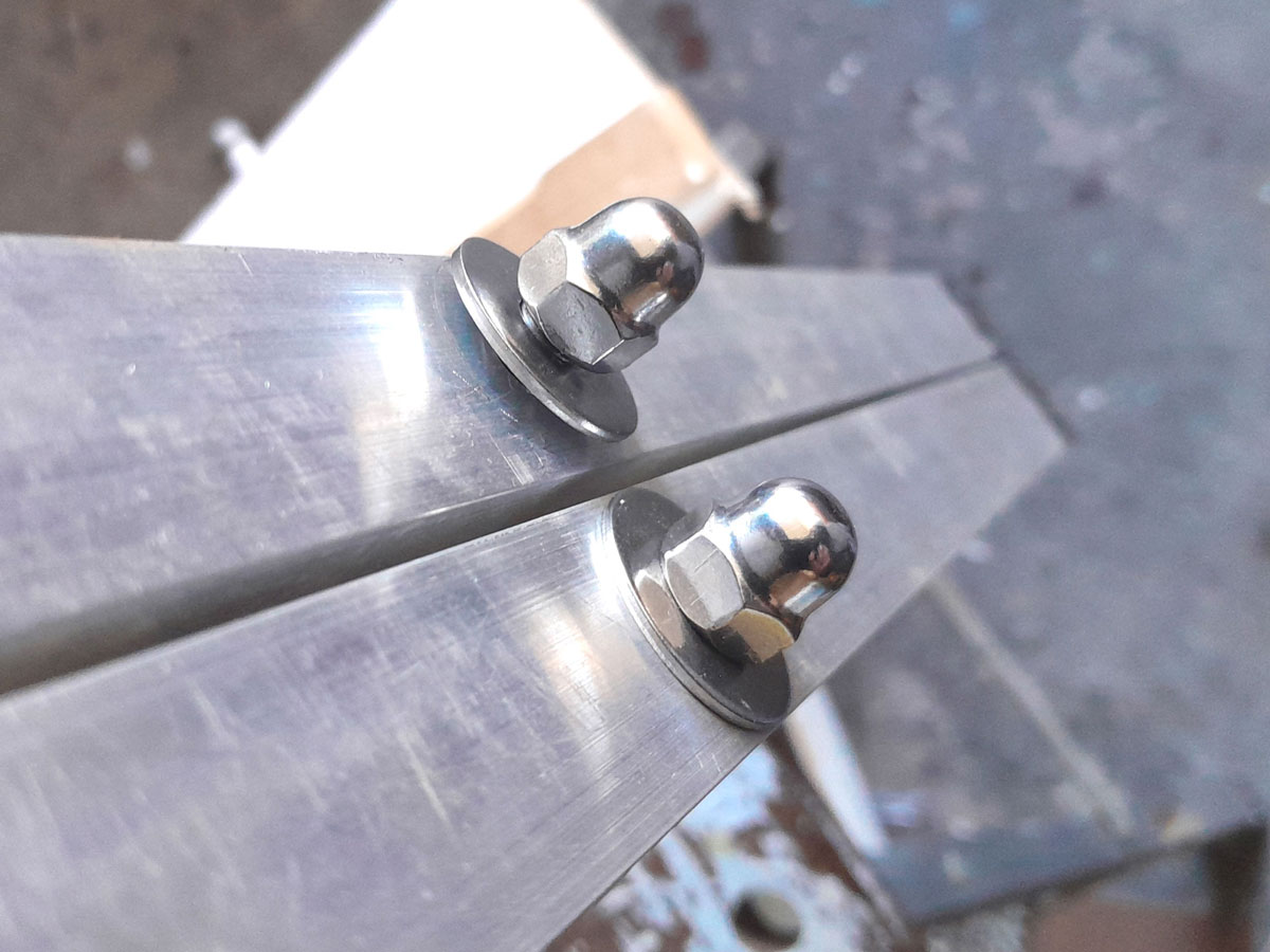 1. …Bottom view showing the use of the small washers to secure the ends of the rivets. This provides a very strong join.