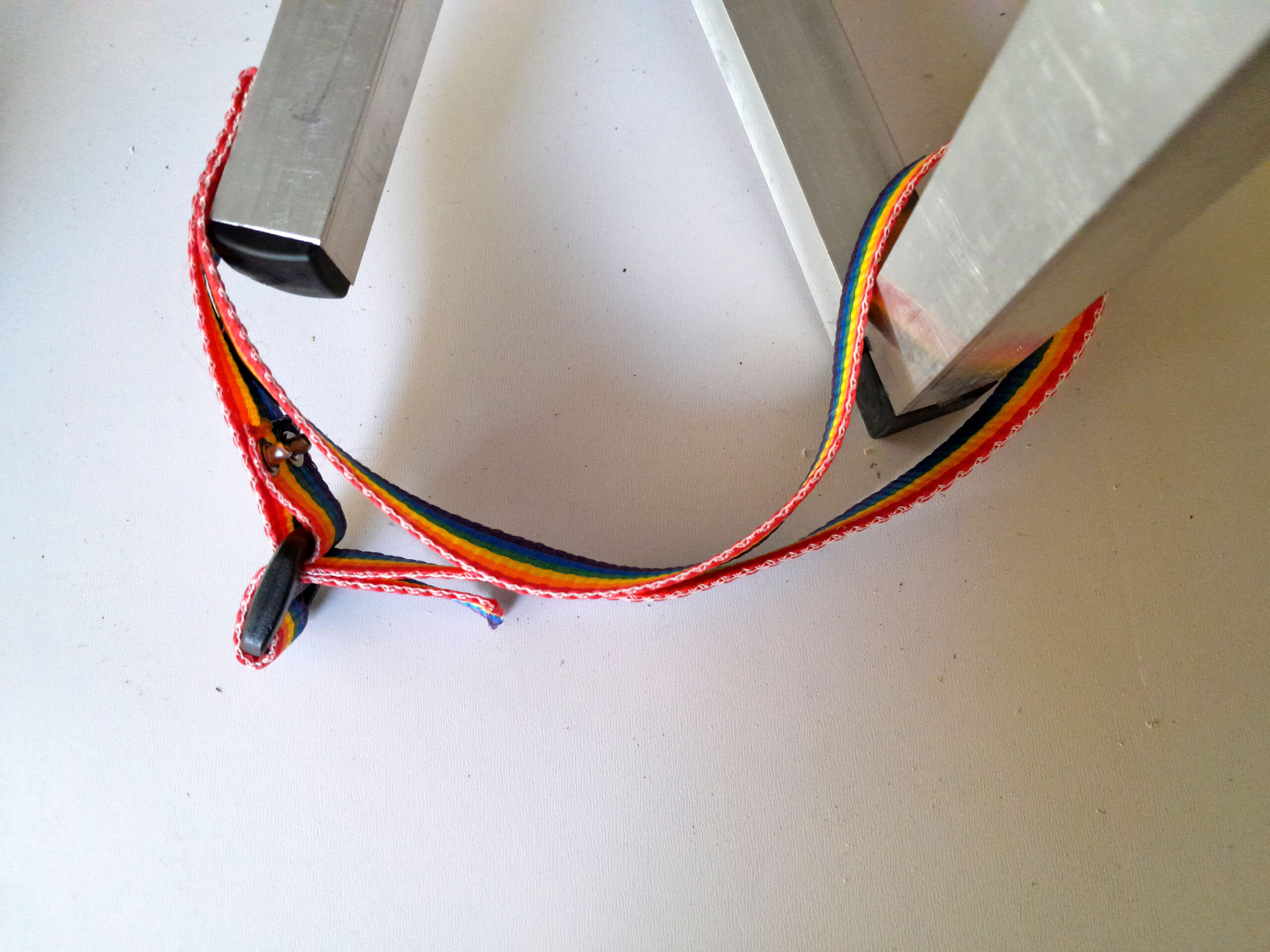 2. On the home stretch… I cut the strap in two, and seared the ends with a small blowtorch (a lighter will do just as well) to melt the thread and stop it fraying.