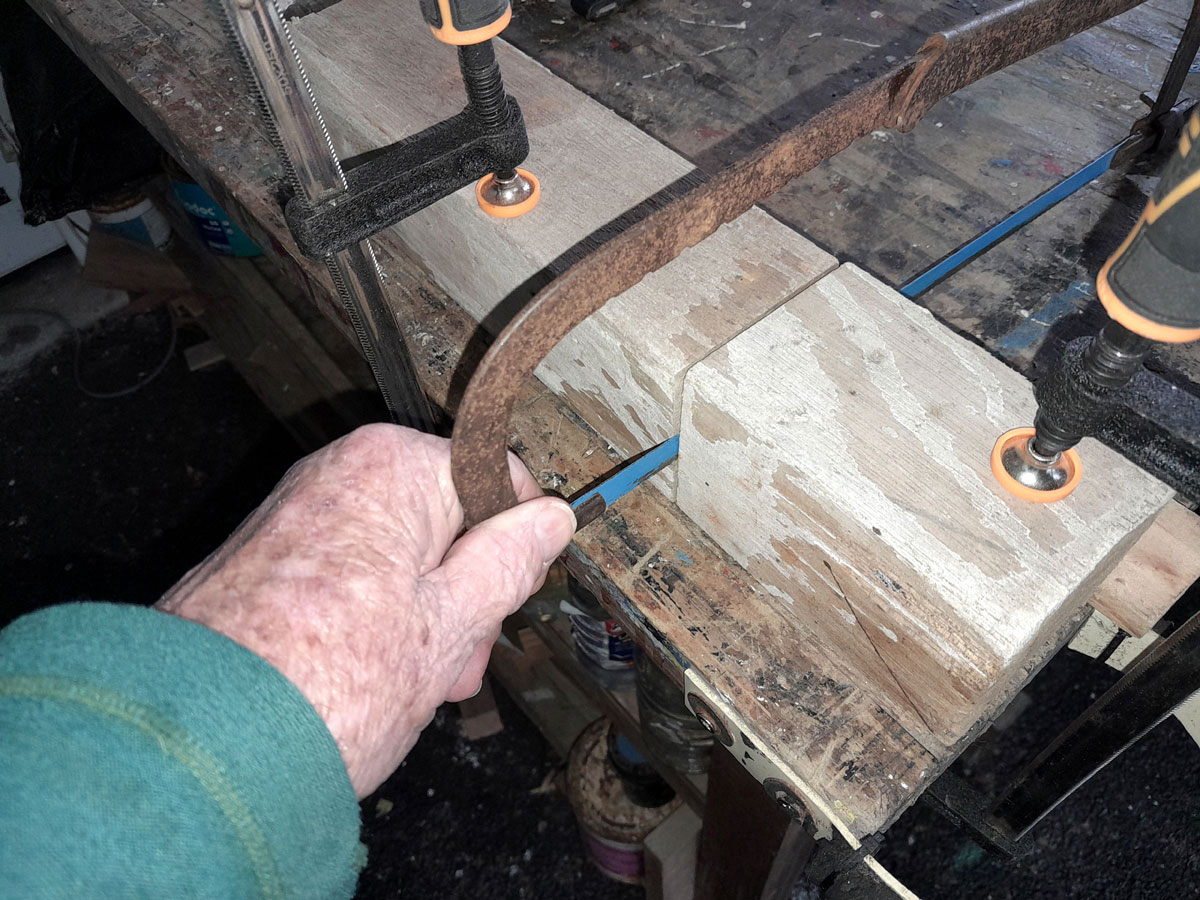 4. I decided to use the good old hacksaw to cut the pieces, and to keep the blade vertical for a more accurate cut, made up this ‘mitre guide’.