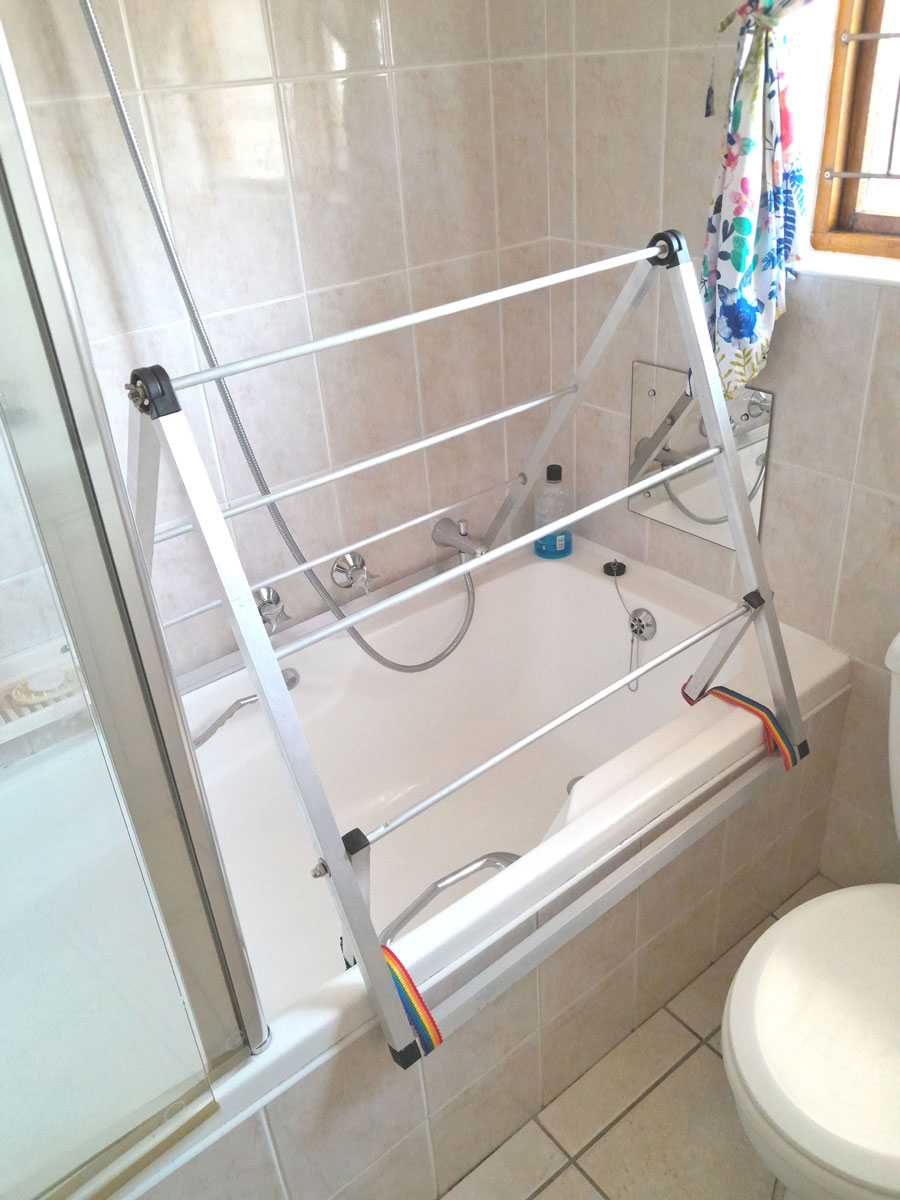 3. … Rests on the wider part of the bath’s rim. Cunning, eh!
