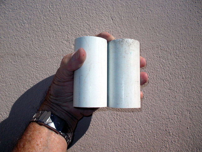 - Ensure that the pipe surfaces are completely dry, slip a length of the pipe on to one elbow, coat the inner surface of the vertical opening with adhesive and push it on to the bottom of the pipe leading to the heater, using the loosely-connected length of pipe to align the elbow precisely with the wall.