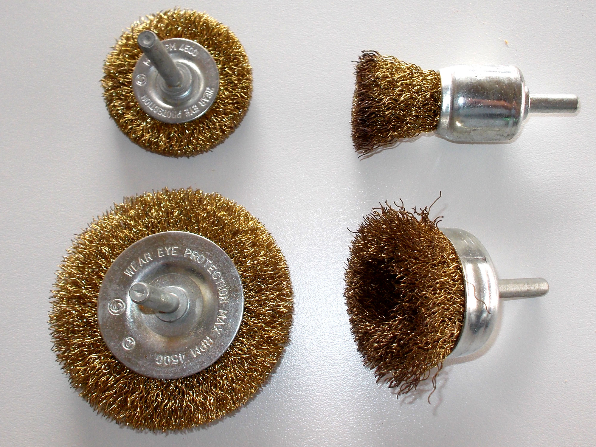 - Safety is particularly important when using wire brushes – in this case brass-bristled – to remove rust and old paint. It is little comfort that steel-bristled brushes, should a bristle come loose, can be removed from your eye possibly using a very strong magnet wielded by your newly acquainted eye specialist,. That is not the case with a brass bristle. Either way, whatever bristle or piece of debris gets in your eye or eyes could be extremely distressing and even life-changing. Note in this image that these fittings also advise wearing eye protection, and in addition, recommend a maximum speed of 4500rpm. Follow both instructions.