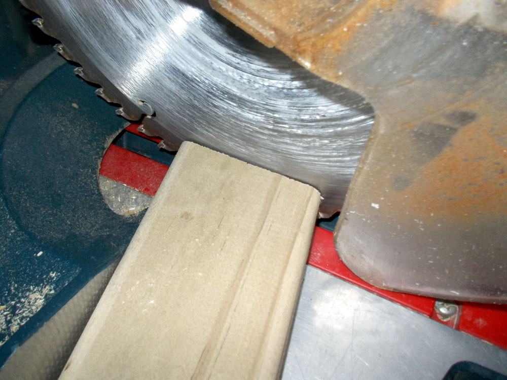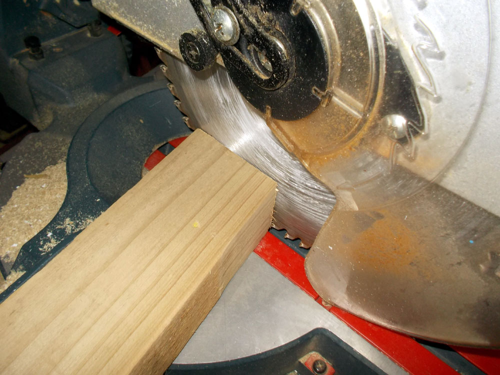 - Apart from the ends of the slats for the step and the top platform, which are all 90°, the legs and struts are cut at an angle of 10°. This spreads the legs out, placing the top step/platform back from the front legs, which means you won’t overbalance forward. Here the legs are being cut; the main legs (4) are each 500mm, and the step legs (2) are each 250mm long.