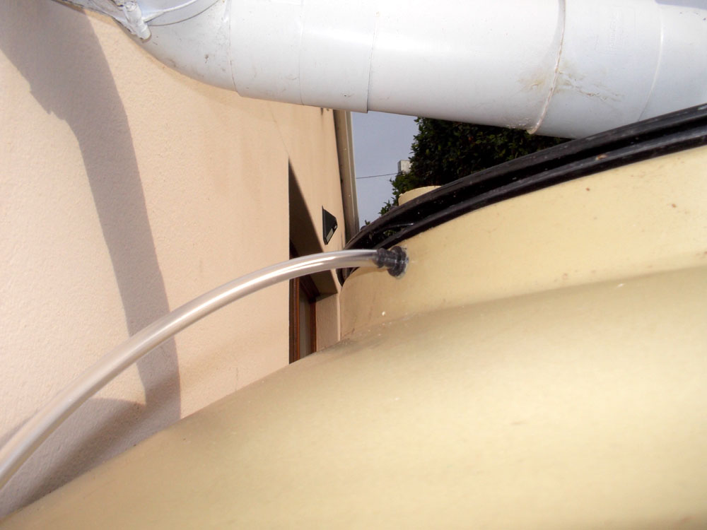 Obviously, when there is heavy rain, water will overflow from the tank as soon as it reaches the rim, as the 5mm tube will not be able to handle it, but if your tank is on a paved area, as is the one in this feature, excess water will flow on to adjacent plants, lawn and so on, and if it is not on a paved area, then the overflow will water surrounding plants.