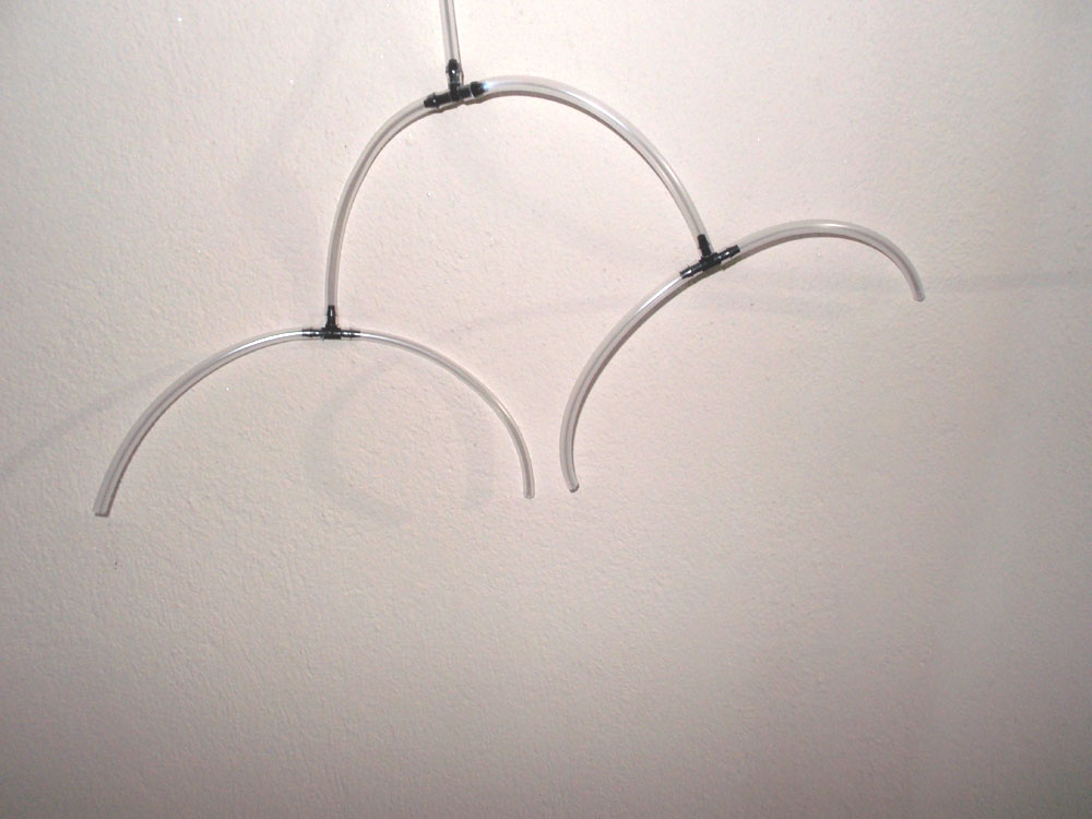 - One pair of outlets. To ensure that the water is delivered to all four areas, the 5mm micro barbed T connector from the single tube from the tank needs to be level and then in turn feed to the two other 5mm micro barbed T connectors, which also both need to be at the same level, but below that of the first 5mm micro barbed T connector. This is to ensure that even when there is only a very light overflow from the tank, it is delivered as evenly as possible to all four outlets. Adjust the 5mm micro barbed T connectors until you see the flow through each tube is the same.