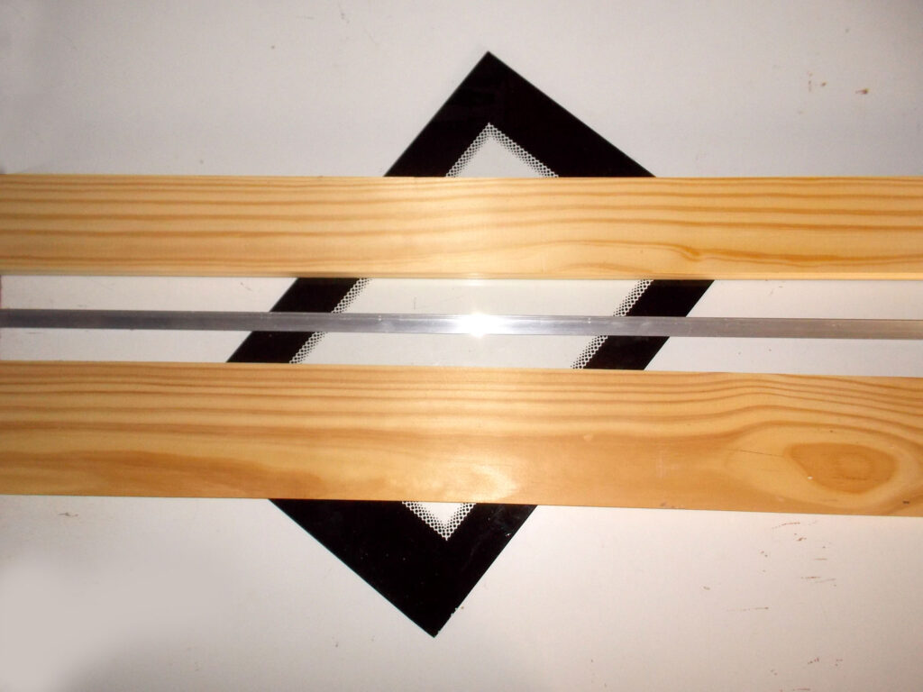 A view of the materials, in this case just lone length of the 22x69mm SA pine legs timber, the single length of 12x96mm SA pine for the sides, and one length of the aluminium equal angle.
