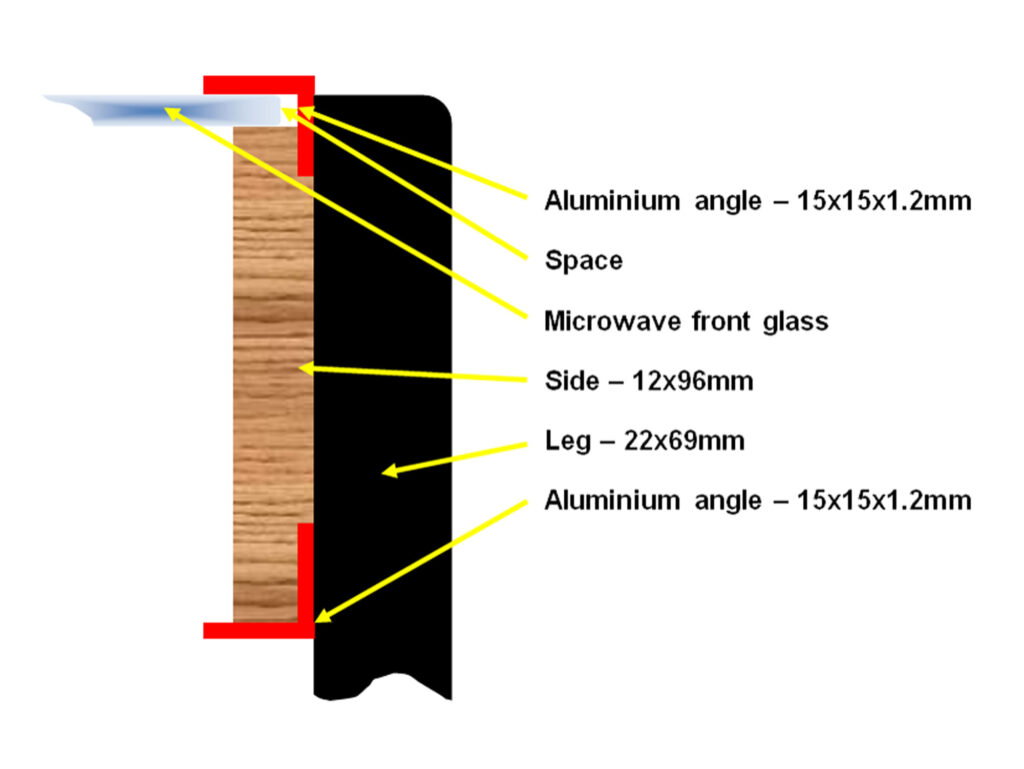 A top view showing very clearly how the recesses in the sides allow space for the aluminium glass surround frame to slot into position.