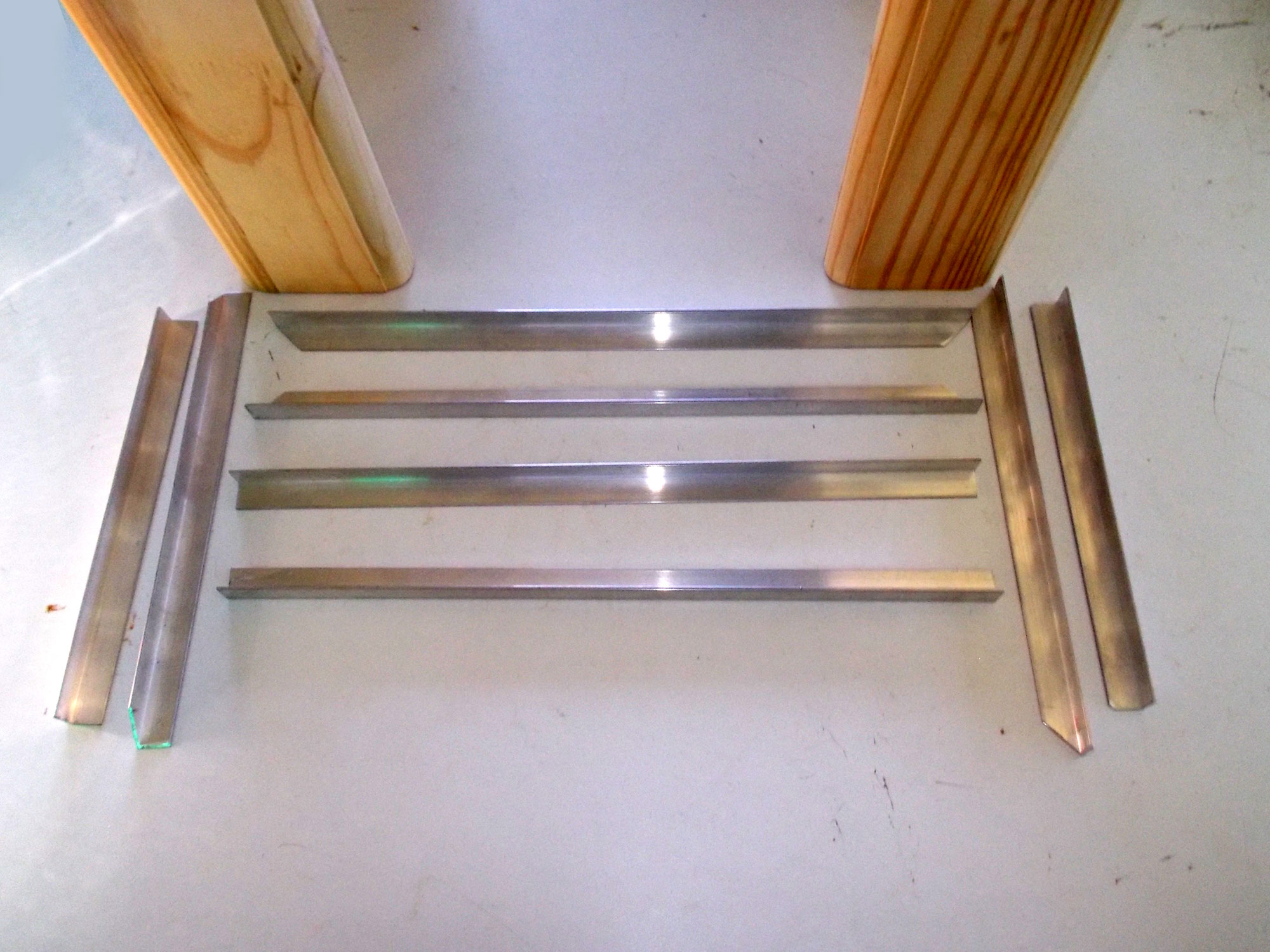 15x15x1.2mm – two lengths of 2.5m, cut to fit (for the surround for glass, and sides’ underside trim)