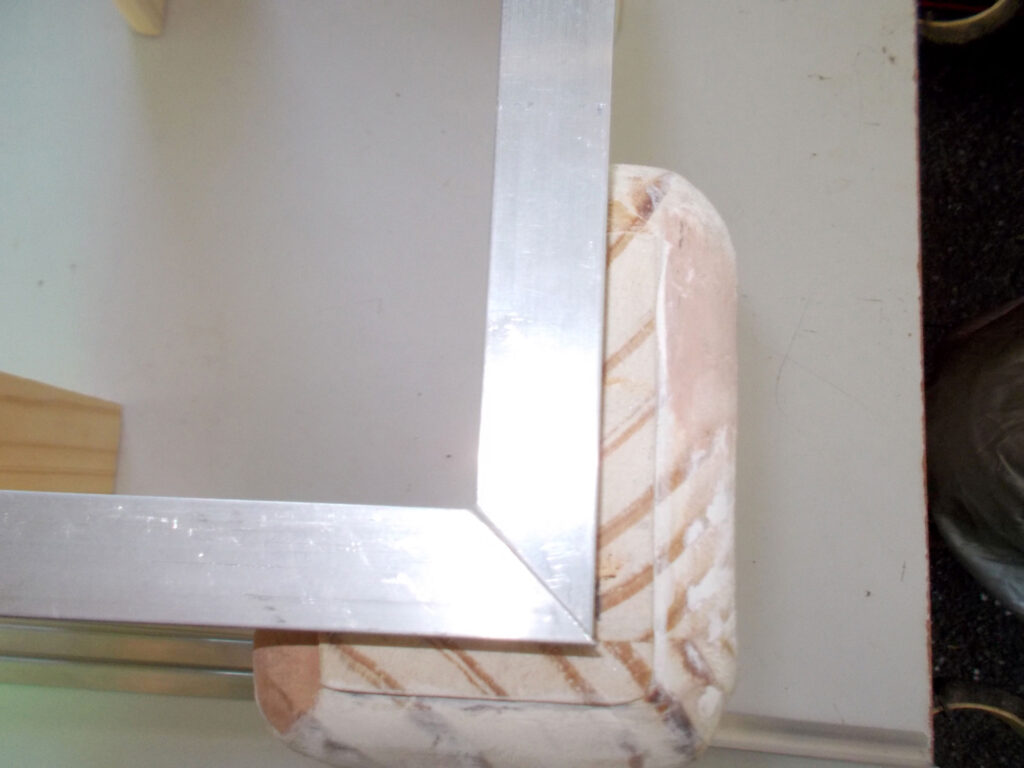 And this is a mitred corner. At this stage, I set the aluminium strips aside and applied the finishes to the wood frame to achieve an ‘ebony look’.