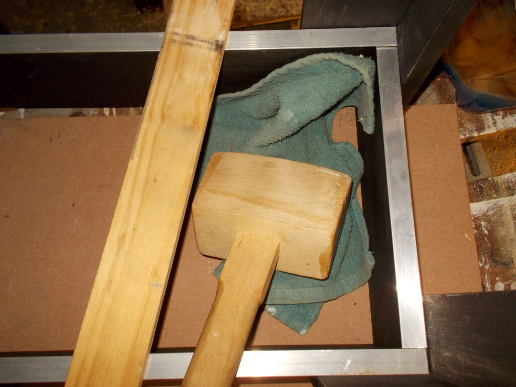 I used a length of wood, plus an old facecloth (to avoid any marring of the aluminium surfaces) and a mallet to gently tap the underside trim pieces into their position. If your recess and measuring is up to par, they are held very snugly and won’t come loose.