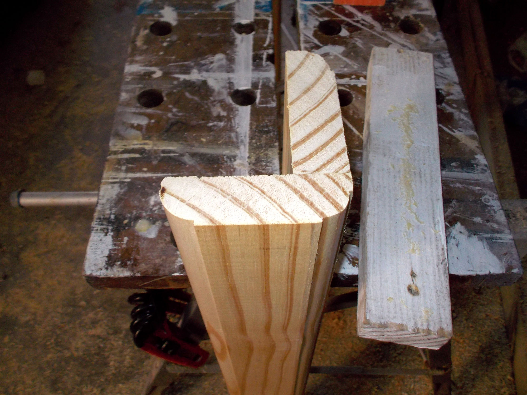 Then I very carefully routed each end of the 900mm lengths and applied wood filler liberally to fill any chipped areas – quite common when routing across the grain as in this case. Once the filler had fully dried, I sanded it down to match the routed contour. Hint: The deeper the chipping, the better it is to apply two or more layers of filler, allowing each successive layer to fully cure, as a single thicker layer can shrink a little as it dries. The idea is to always have the filled area standing a little proud of the surrounding surface and then sand it down level with the surrounding wood – be that surface flat or curved, as in this case.