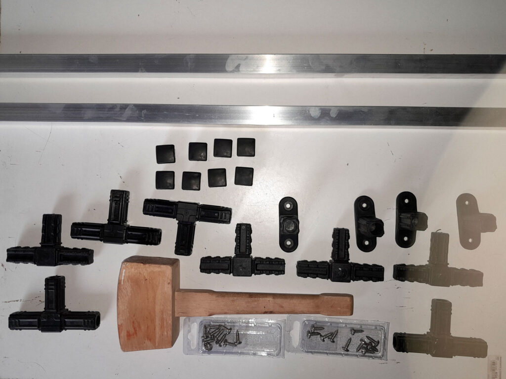 - Aluminium – 25mm square section: Two lengths of 2.5m, cut to: