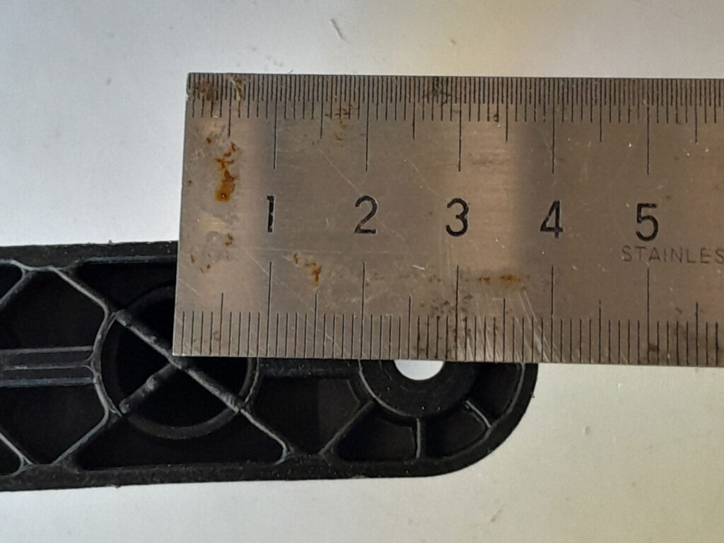 - Then I VERY carefully measured the spacing for brace securing screws – 26mm from the centre, as it turns out.