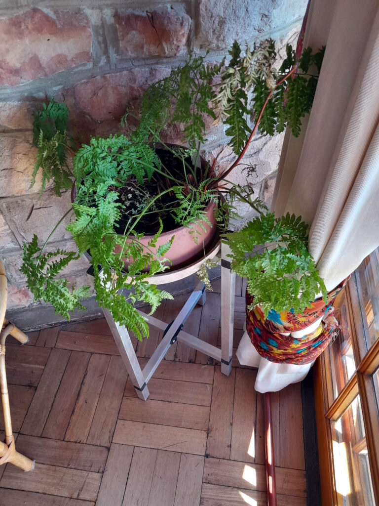 The lower cross bar assembly is ideal for a second pot plant, if you wish… perhaps a more erect one rather than a trailing one such as a creeper, which could be stepped on. The thing is that contrasting foliage can in its own right be most attractive.