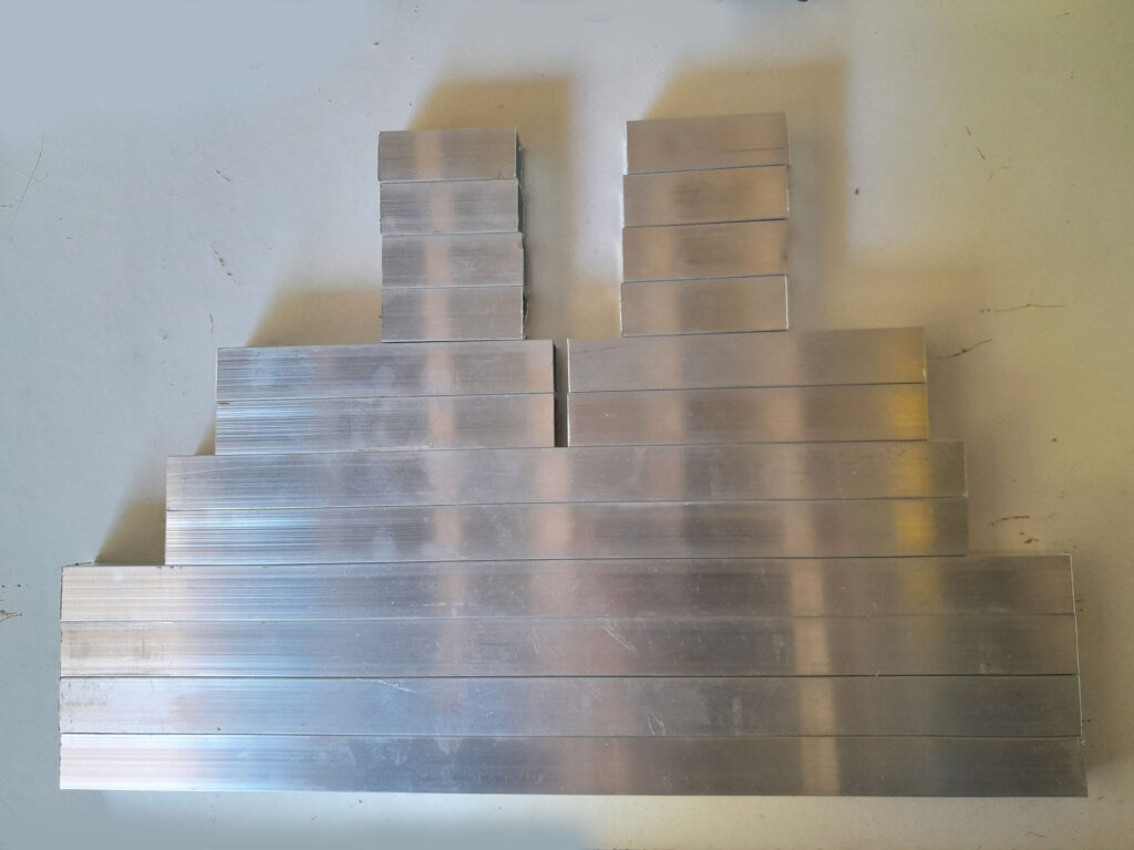 - Here are all the pieces cut to length and ready for assembly.