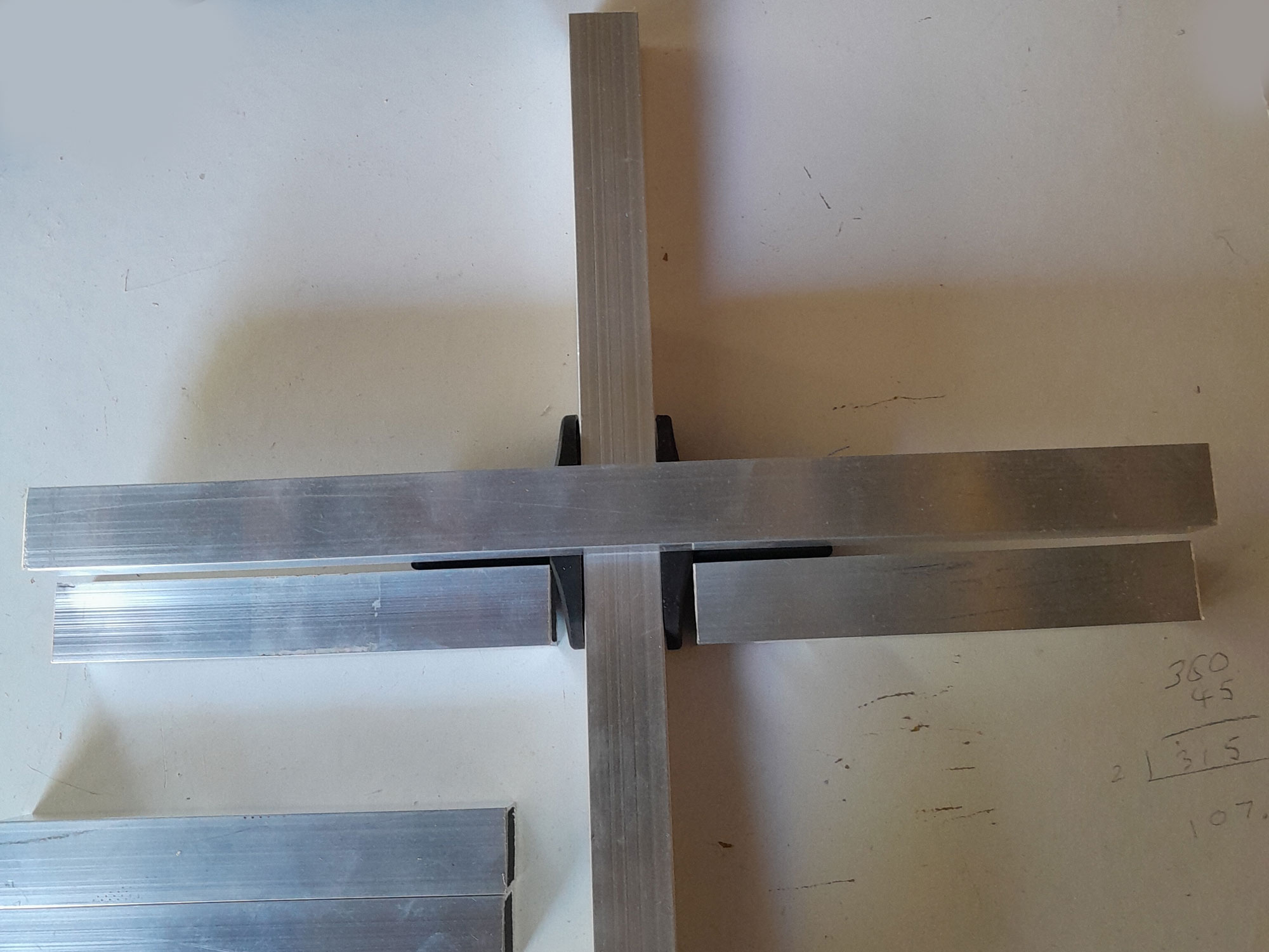 - Aluminium – 25mm square section: Two lengths of 2.5m, cut to: