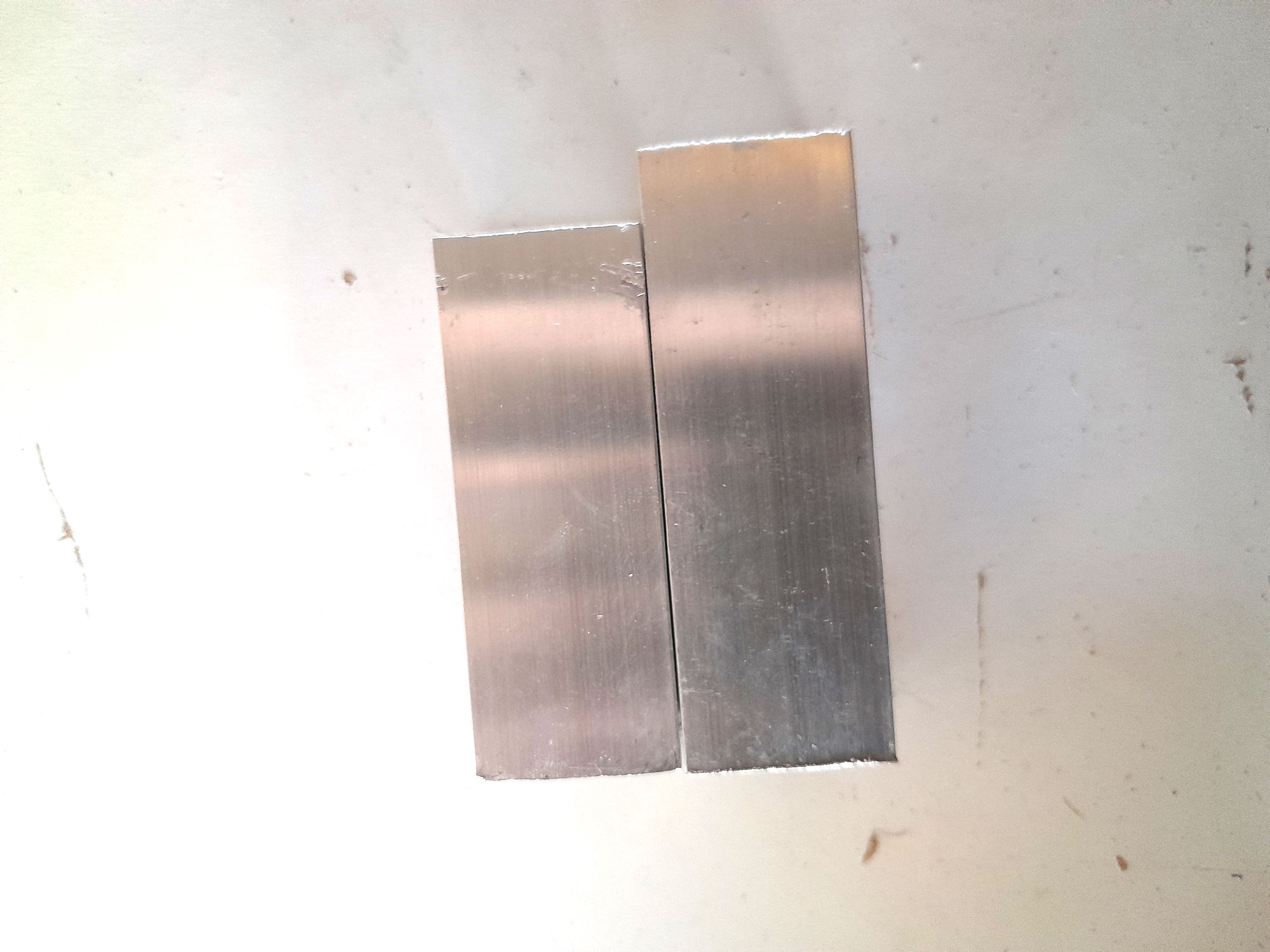 - Here are the respective lengths of the top (left) and the slightly longer foot (right). Upon reflection, I could have made the feet longer, but they do work fine as is.