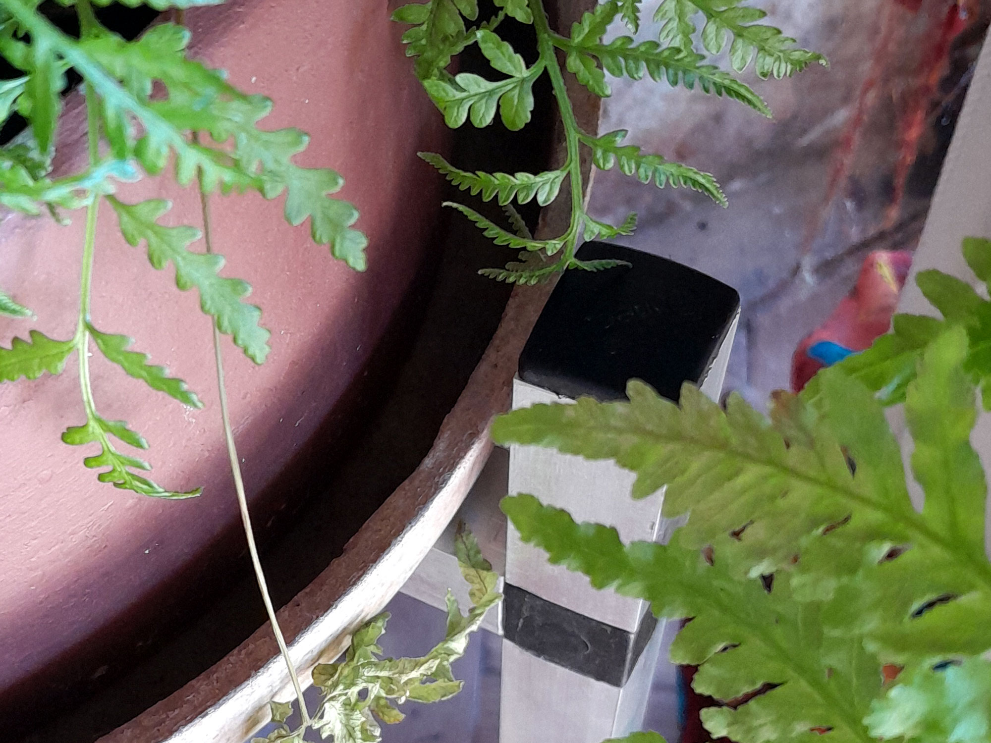 The lower cross bar assembly is ideal for a second pot plant, if you wish… perhaps a more erect one rather than a trailing one such as a creeper, which could be stepped on. The thing is that contrasting foliage can in its own right be most attractive.