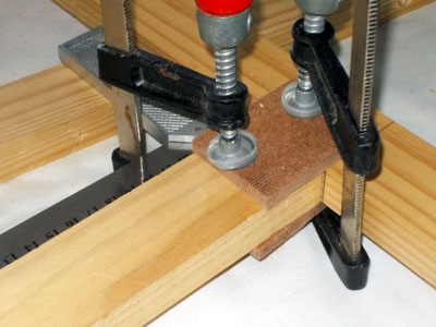 - Cut a 560mm brace and clamp it firmly to the one vertical – 150mm from the end.